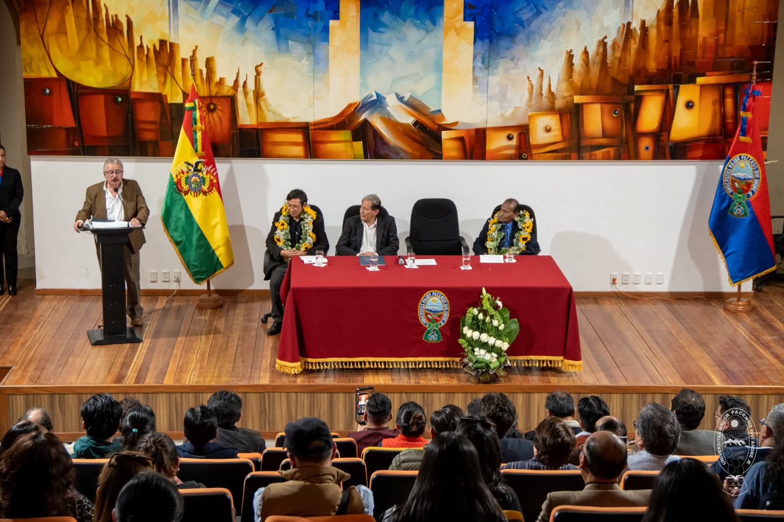 🏛 Mediante la Resolución N.º 628/2025 del Honorable Consejo Facultativo, la Facultad de Arquitectura, Artes, Diseño y Urbanismo (FAADU) de la UMSA celebró el acto de posesión de sus nuevas autoridades electas. La ceremonia fue encabezada por el Rector Interino, Dr. Tito Estévez Martini, y el Vicerrector Interino, Lic. Jorge Velasco Orellanos.