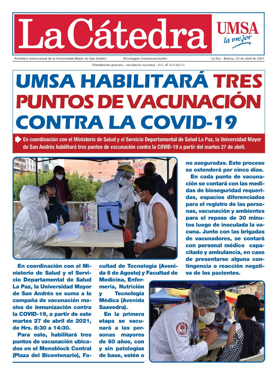 UMSA habilita tres puntos de vacuna con la COVID-19 - CARRERA DE TECNOLOGÍA MEDICA