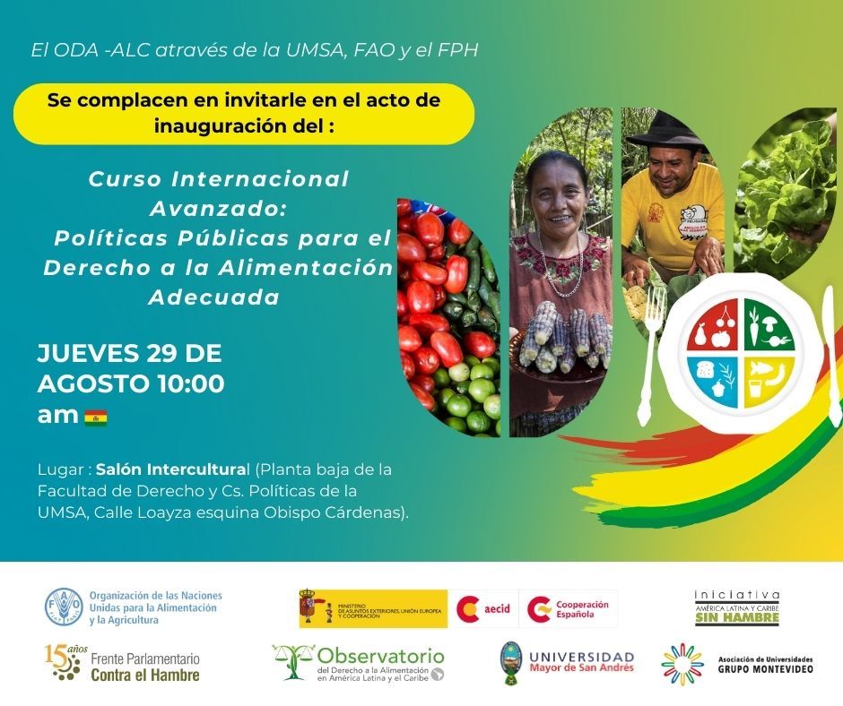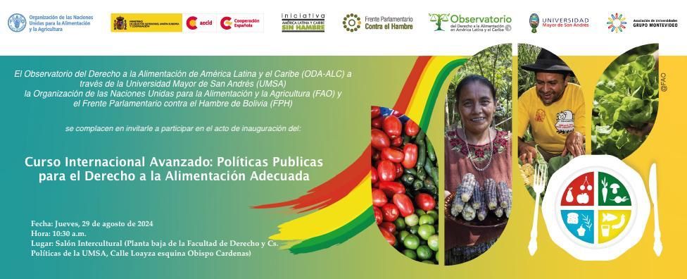 ➡️ Organizado por Vicedecanato de la Facultad de Derecho y Ciencias Políticas de la UMSA , el Frente Parlamentario Contra el Hambre del Estado Plurinacional y la Organización de las Naciones Unidas para la Alimentación y la Agricultura FAO .