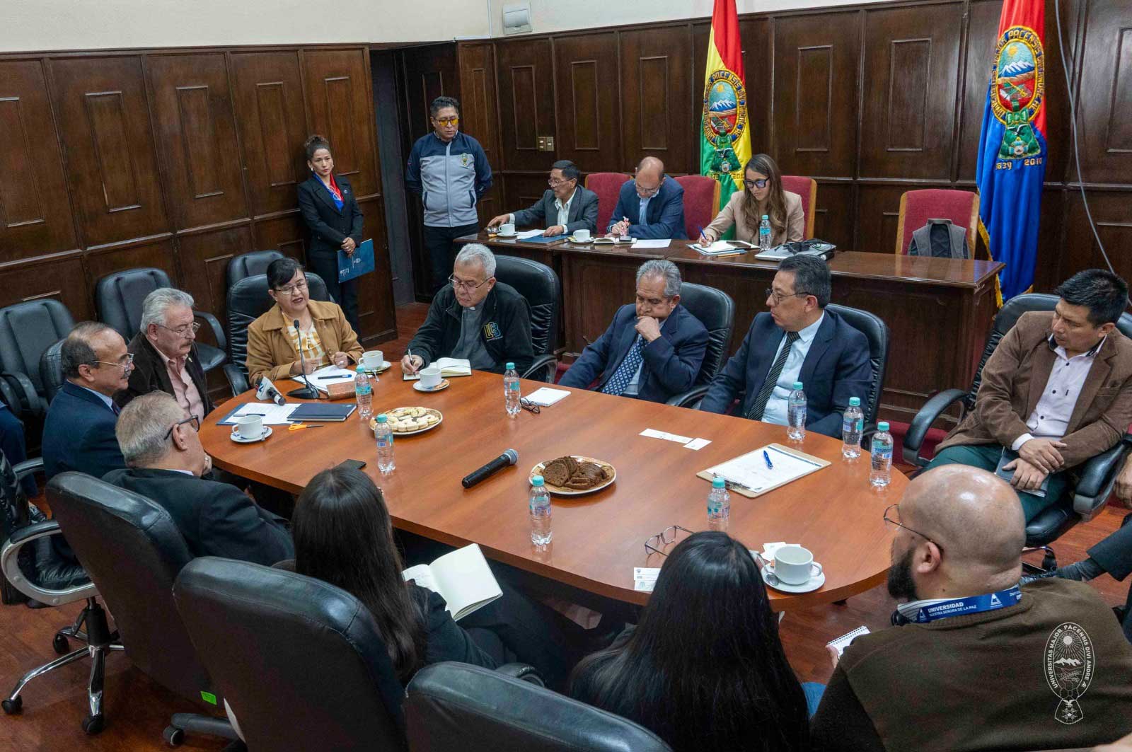 La Paz, 19 de febrero de 2026 (DCOM-UMSA).- La Universidad Mayor de San Andrés (UMSA) y universidades privadas del país se reunieron con el objetivo de abrir una nueva etapa de articulación académica y construir, de manera conjunta, propuestas que fortalezcan las políticas públicas en este ámbito, además de consolidar una visión compartida sobre el rol que debe cumplir la educación superior en el desarrollo de Bolivia.